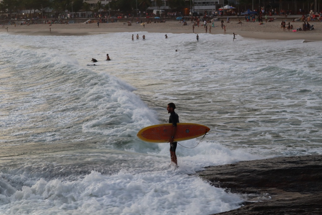 Kallion kielekkeellä tallustelevat teinipojat – Rio de Janeiro, Brasilia.Valtavan kokoista katutaidetta ratikkapysäkin edessä – Rio de Janeiro, Brasilia.Surffari valmistautumassa aaltoihin – Rio de Janeiro, Brasilia.