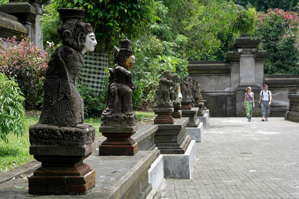 Pariskunta kävelemässä temppelin pihamaastossa – Bali, Indonesia.
